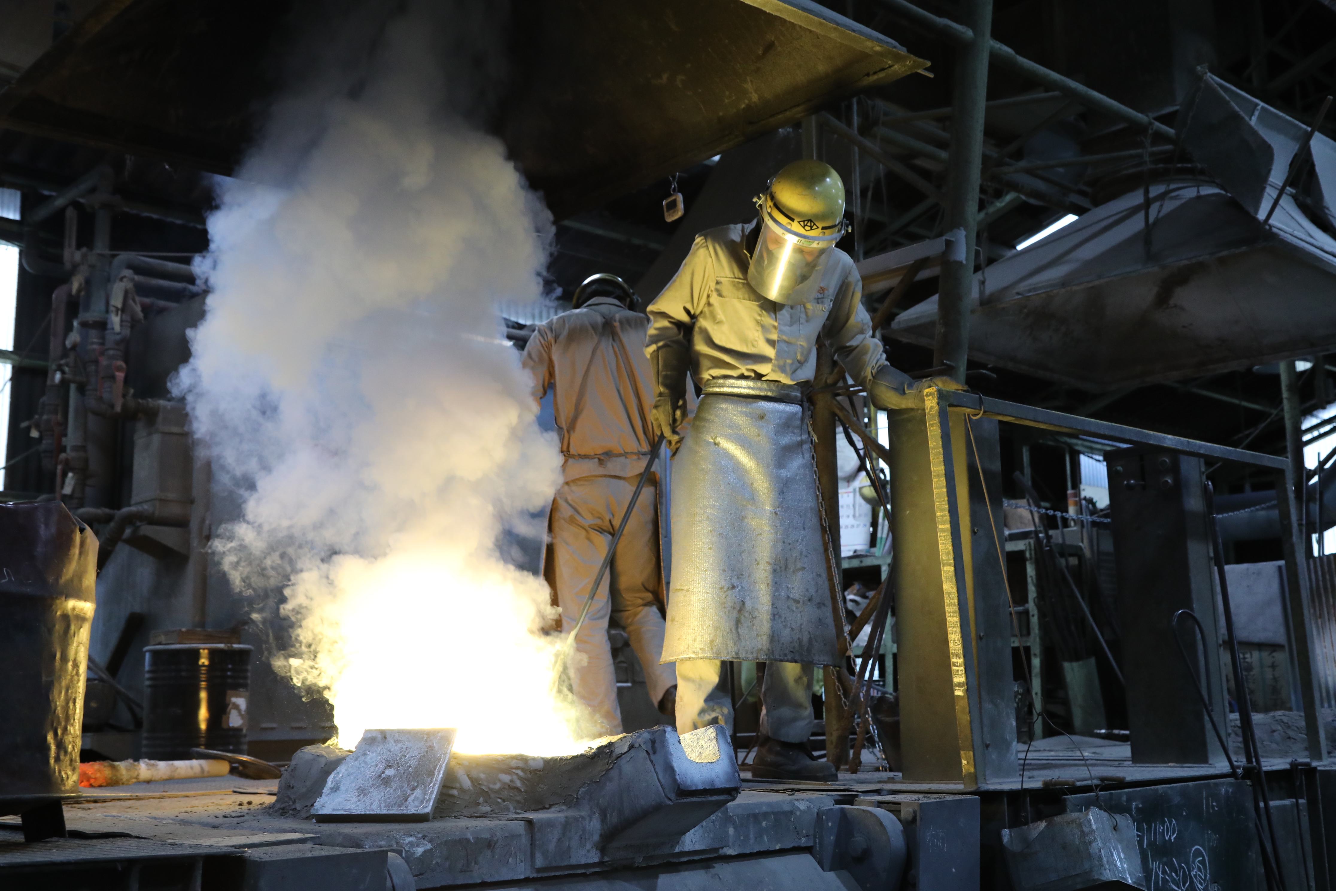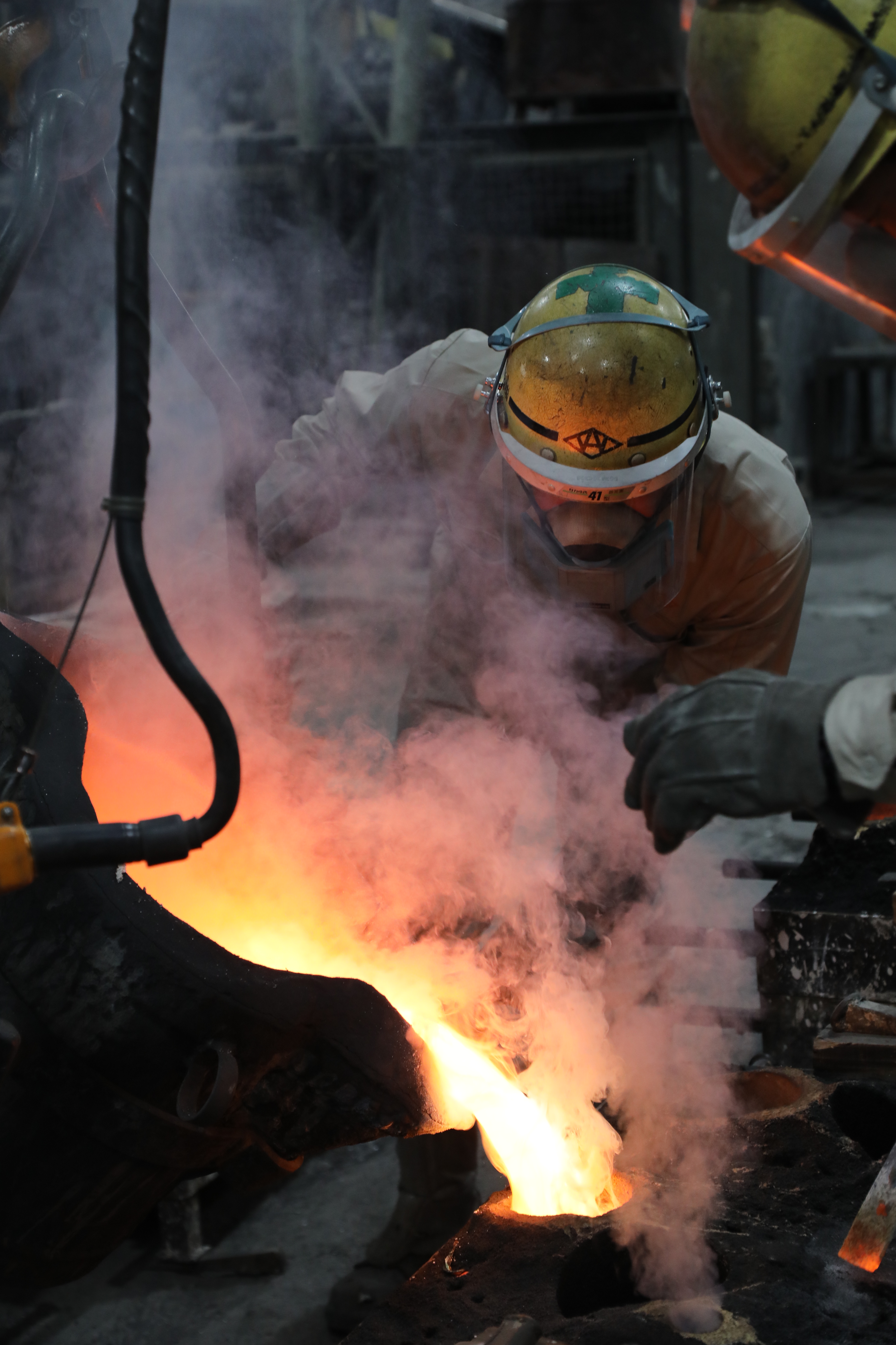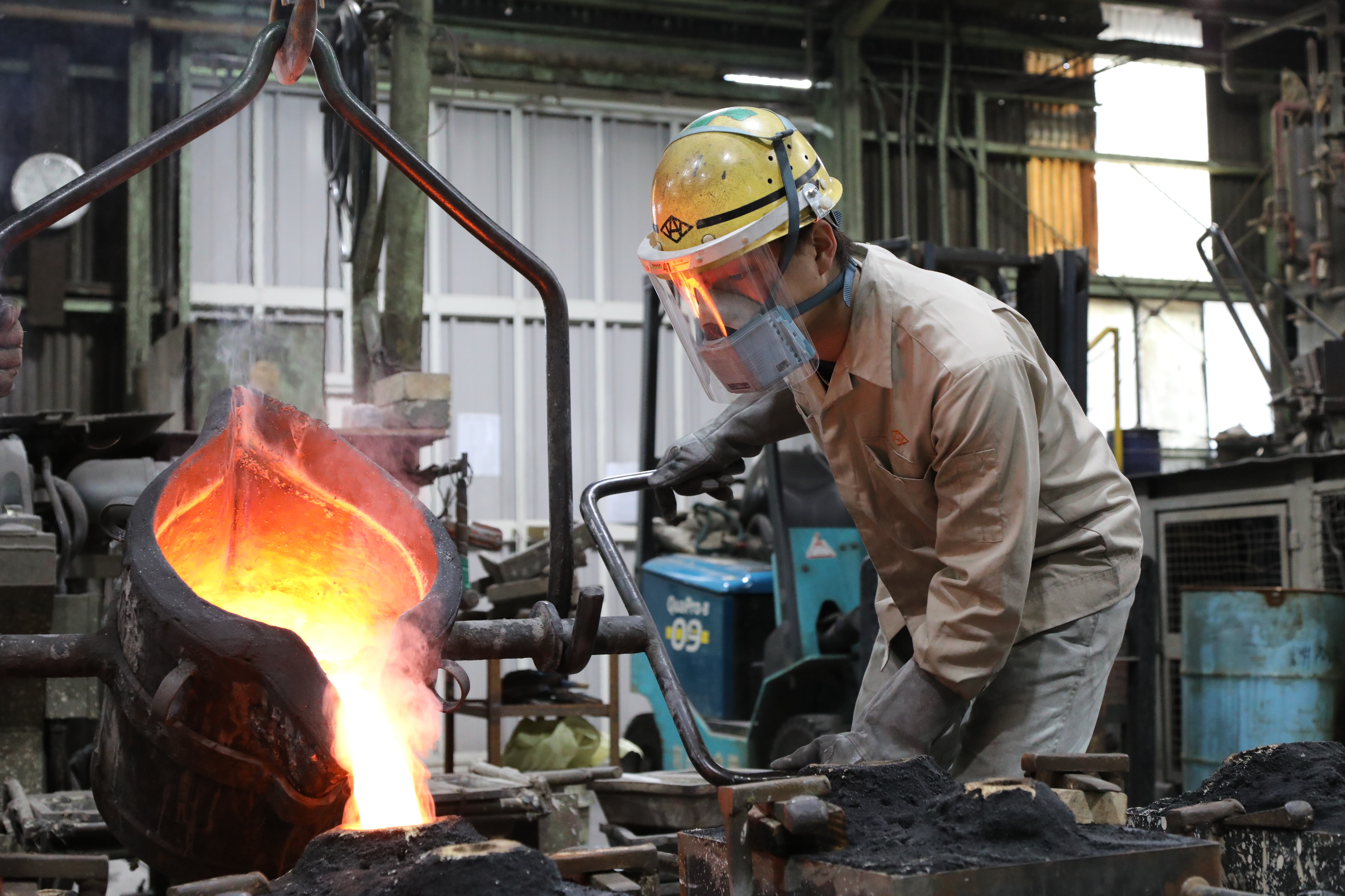 2017年3月31日 現在1946年の創業以来、製鉄所の圧延ライン向けの軸受や船舶用ディーゼルエンジン内の部品など、銅合金部品の鋳造から加工までを一貫生産する和田合金株式会社。金属溶解作業の責任者として電気炉とガス炉を操るのは、入社6年目の山田さんだ。2時間半かけて溶かした銅合金を、約1200℃で出湯。この時の温度管理と脱酸・脱ガス処理が品質を左右する。「微調整や見極めは、自分にしかできない仕事。プレッシャーはあるけど、その分やりがいもあります」と語る横顔は頼もしい。今後は器用さを活かし、他の行程もできるオールラウンダーになることが目標だ。休日は同僚と朝6時半からソフトボール。2歳になった子どもと、キャッチボールができる日を楽しみにしている。