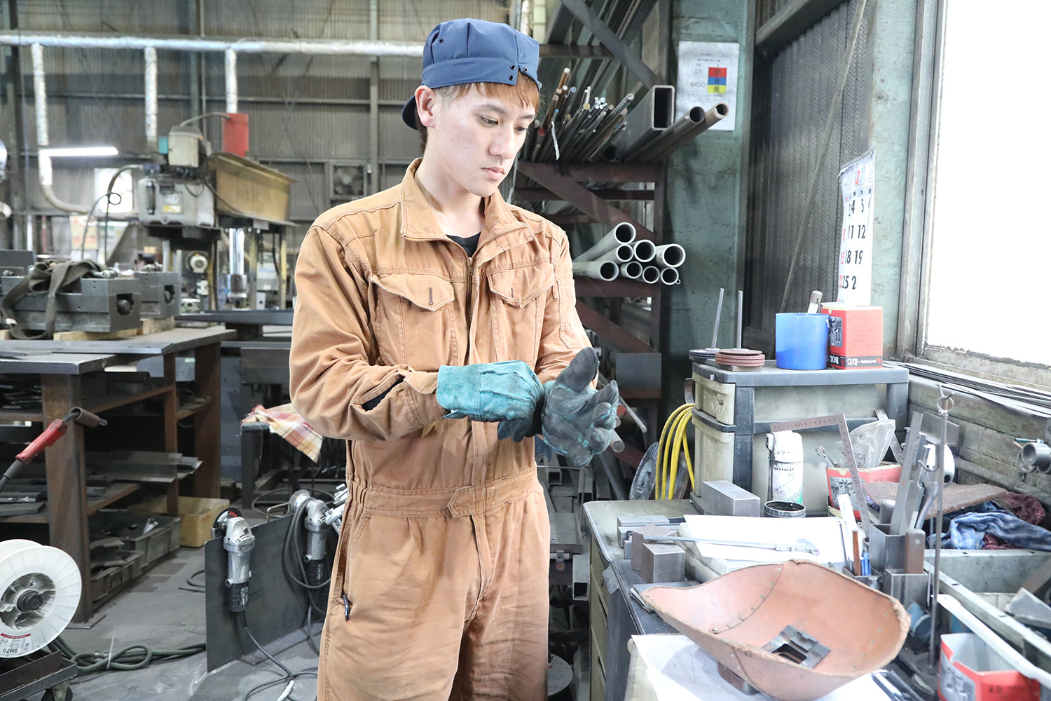 2017年11月30日 現在フォークリフトのアタッチメントや車輌部品(バス・鉄道・自動車等)、生産設備部品などを製造する株式会社川村製作所。クルーズトレイン「七つ星」の天井パネル部品やサファリパーク内を走るジャングルバスの骨格など、高い技術力を活かした仕事が多い会社だ。長谷部さんの前職は自動車の整備士。トラックの整備工程で溶接を行うたび「溶接を極めたい」と思うようになり、同社に転職。入社2年目の現在はフライス盤での切削やボール盤での穴加工、溶接作業を担当し、日々腕を磨いている。「溶接の勉強は現場が一番。素材によって加工の仕方が違うので難しいけど、自分の作った製品が形になり、出荷されるときの喜びはひとしおです」。今後は、あらゆる溶接の資格を取得したいと意欲を燃やす長谷部さん。休日はドライブやショッピングで気分転換している。