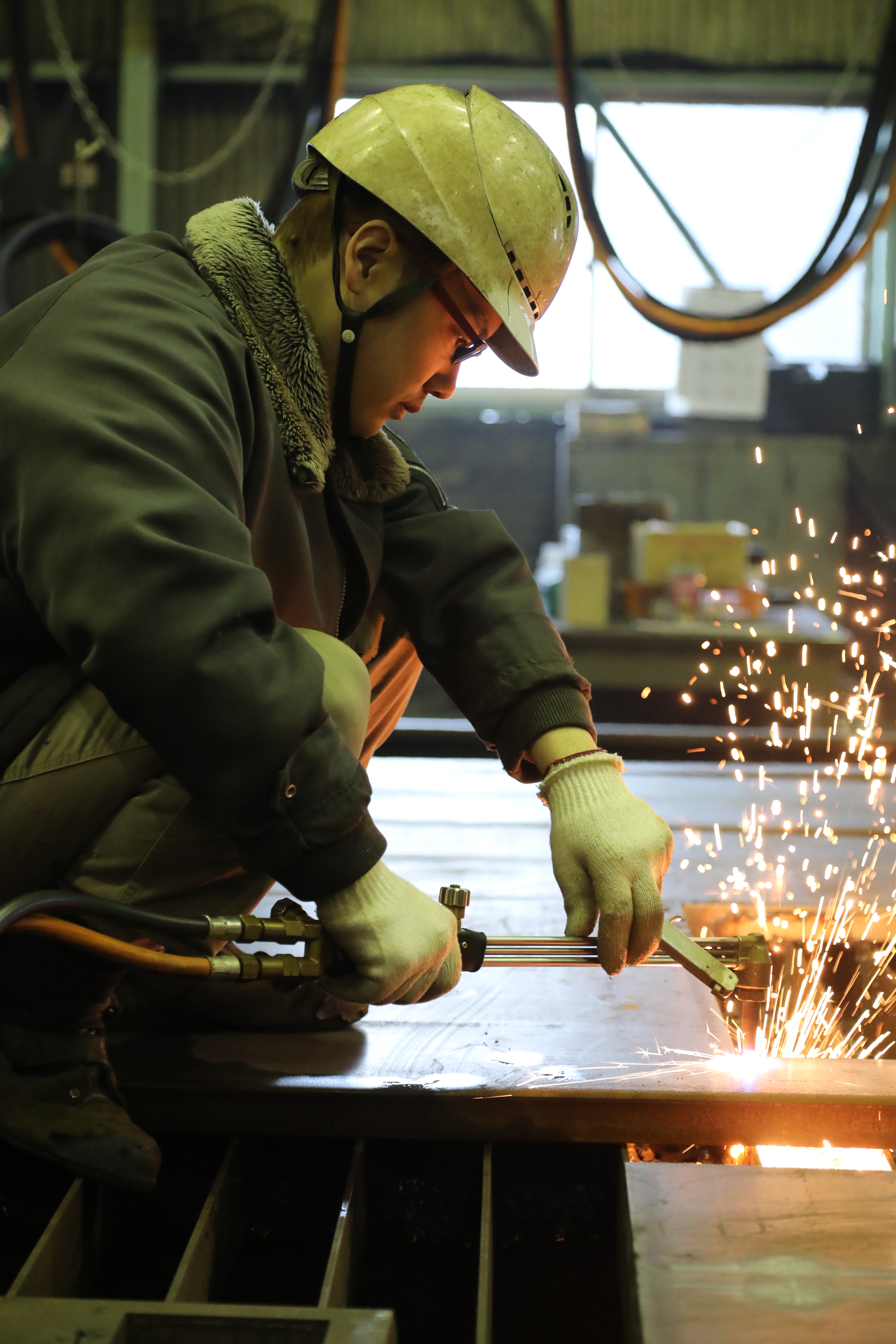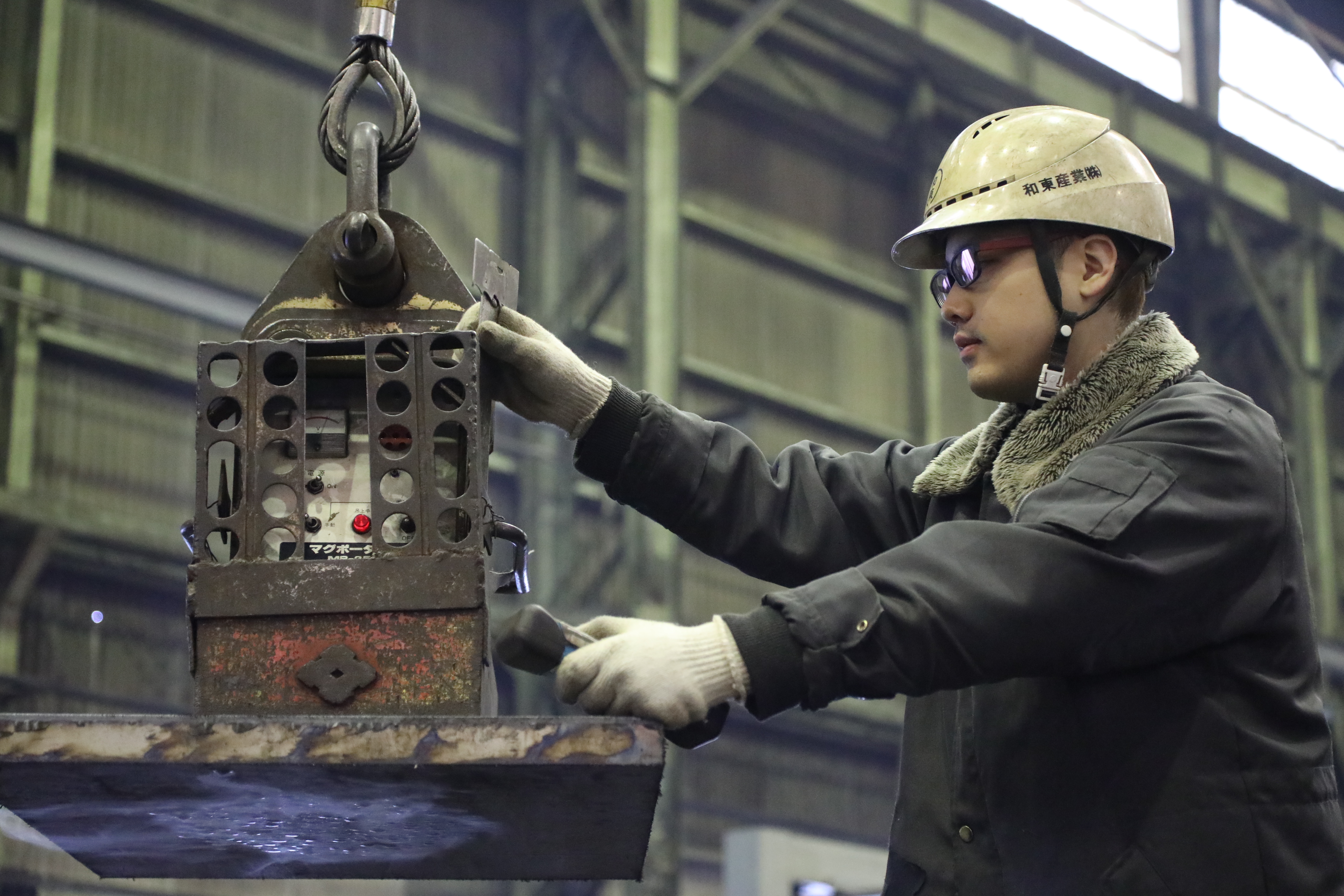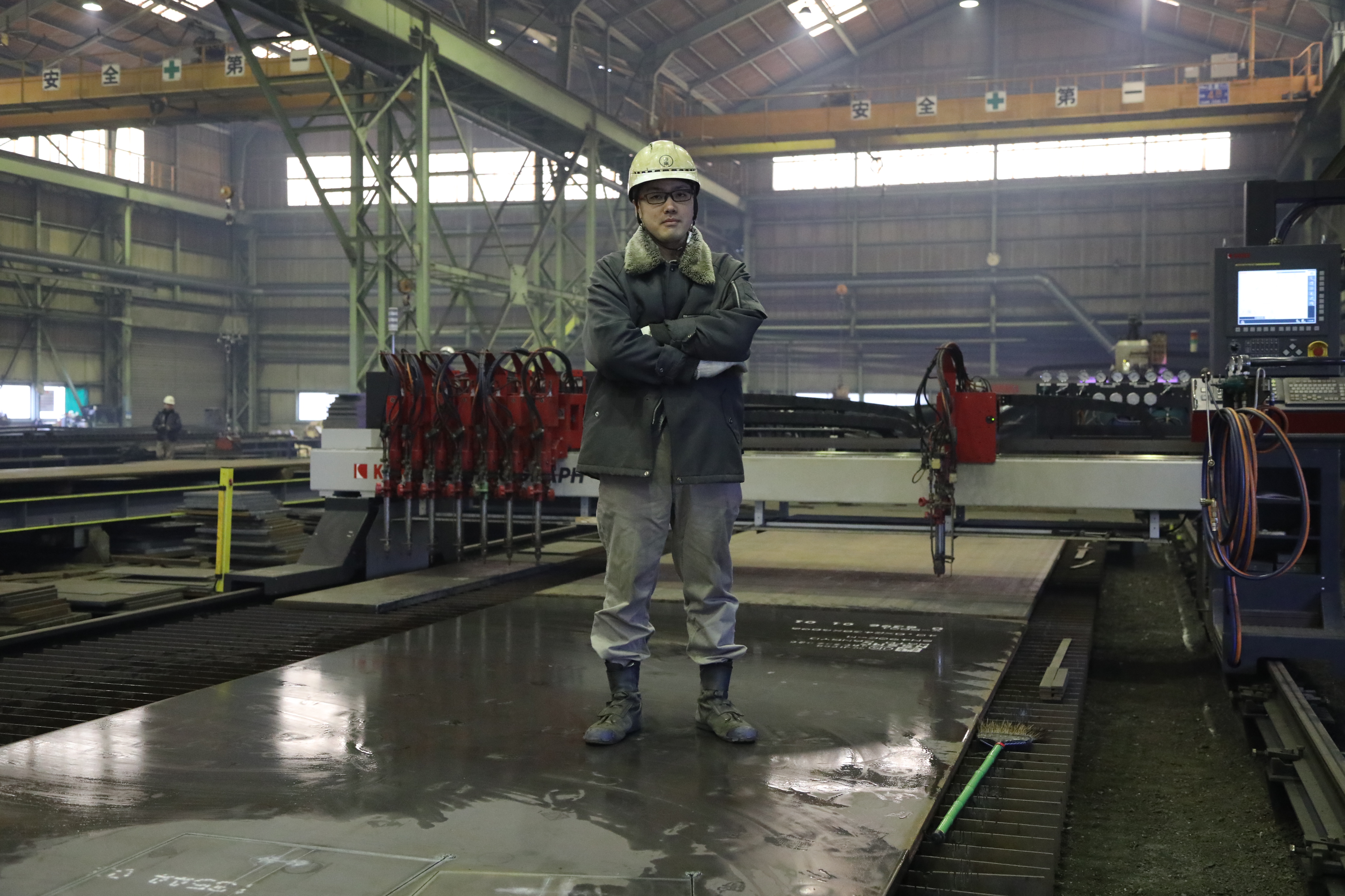 2017年3月31日 現在厚板の剪断や穴あけなどの金属加工を行う和東産業株式会社。ここで加工した精度の高い鉄板は東京スカイツリーやJR大阪駅など、後世に残る建築物に使用されている。入社8年目の高塚さんは、高圧ガスで溶断するNC加工機を使った剪断や穴あけ加工一筋で、日々仕事に取り組んでいる。「火の作り方とか穴をあけるタイミングは経験がものを言う難しい作業。でも、毎日やっているからこそ改良点に気づくこともあって、そんな瞬間が面白い」。商業高校を卒業後、友人の父親が勤務していた縁もあり、同社に入社。まじめに技術を磨いてきた。「自分が加工した鋼材が、東京オリンピックの新国立競技場など、大きな仕事に使われることを誇りに、仕事に励んでいます」。休日は友達と出かけてリフレッシュしているが、そろそろ一緒に遊びに行ってくれる彼女を募集中だ。