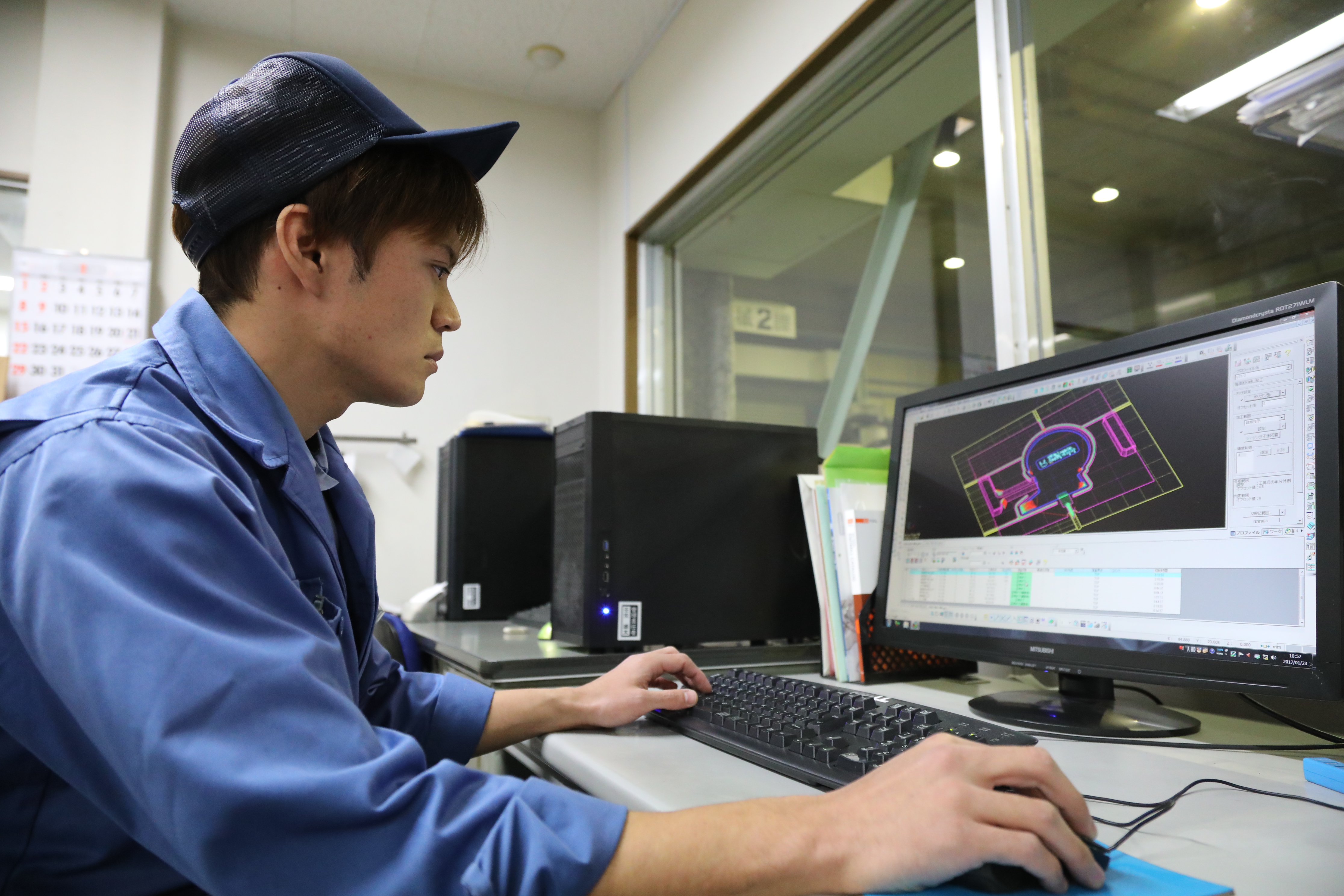 2017年3月31日 現在自動車をはじめ医療や光学、家電機器類に至るまで、多種多様な業界のプラスチック射出成形用金型を設計・製作している西日本精機株式会社。小さい頃から工作好きだった壬生さんは、迷わずものづくりの道へ。工業高校から福山市のポリテクカレッジに進学した後、就職、結婚を経て地元・北九州へ戻り、同社に転職。以来13年間、製造業の要と言われる金型一筋で腕を磨き、厚生労働省の技能検定(機械加工)では1級に1発合格した。「加工のやり方は無限にあって、よりよい製品にできるかは自分次第。絶えず最適な方法を考える楽しさを若い人たちに伝えたい」と切削加工の実務に加え、金型製作の司令塔として若手の育成にも全力投球している。休日は大好きなサッカーを息子たちと楽しむ。一方、社内にもフットサルクラブを設立。昼休みには仲間とボールを蹴り、コミュニケーションを深めている。