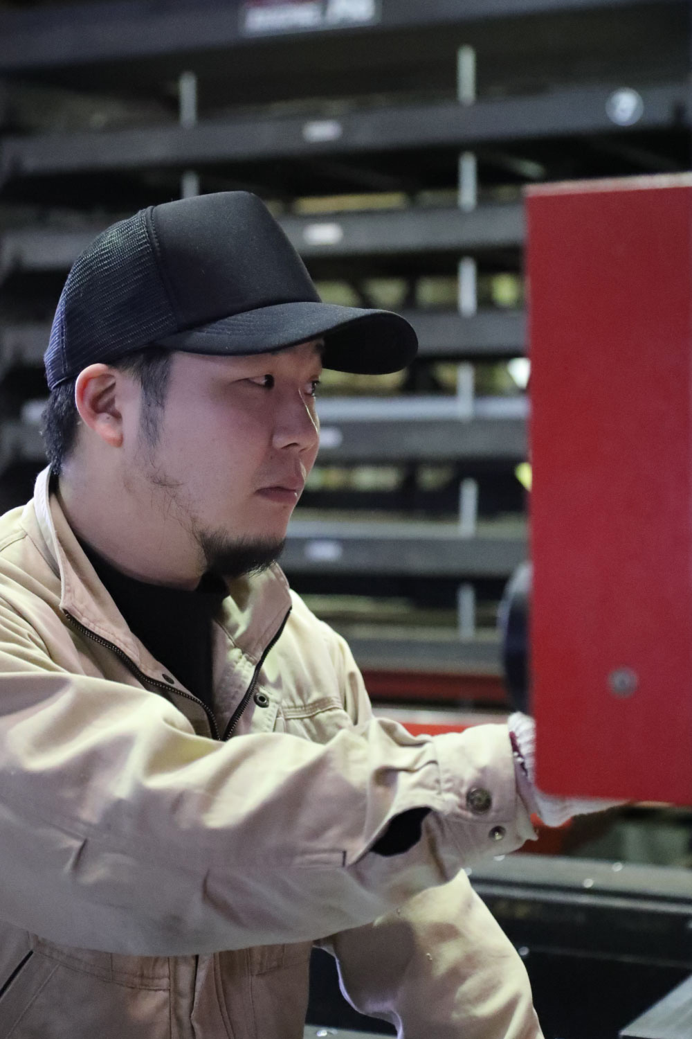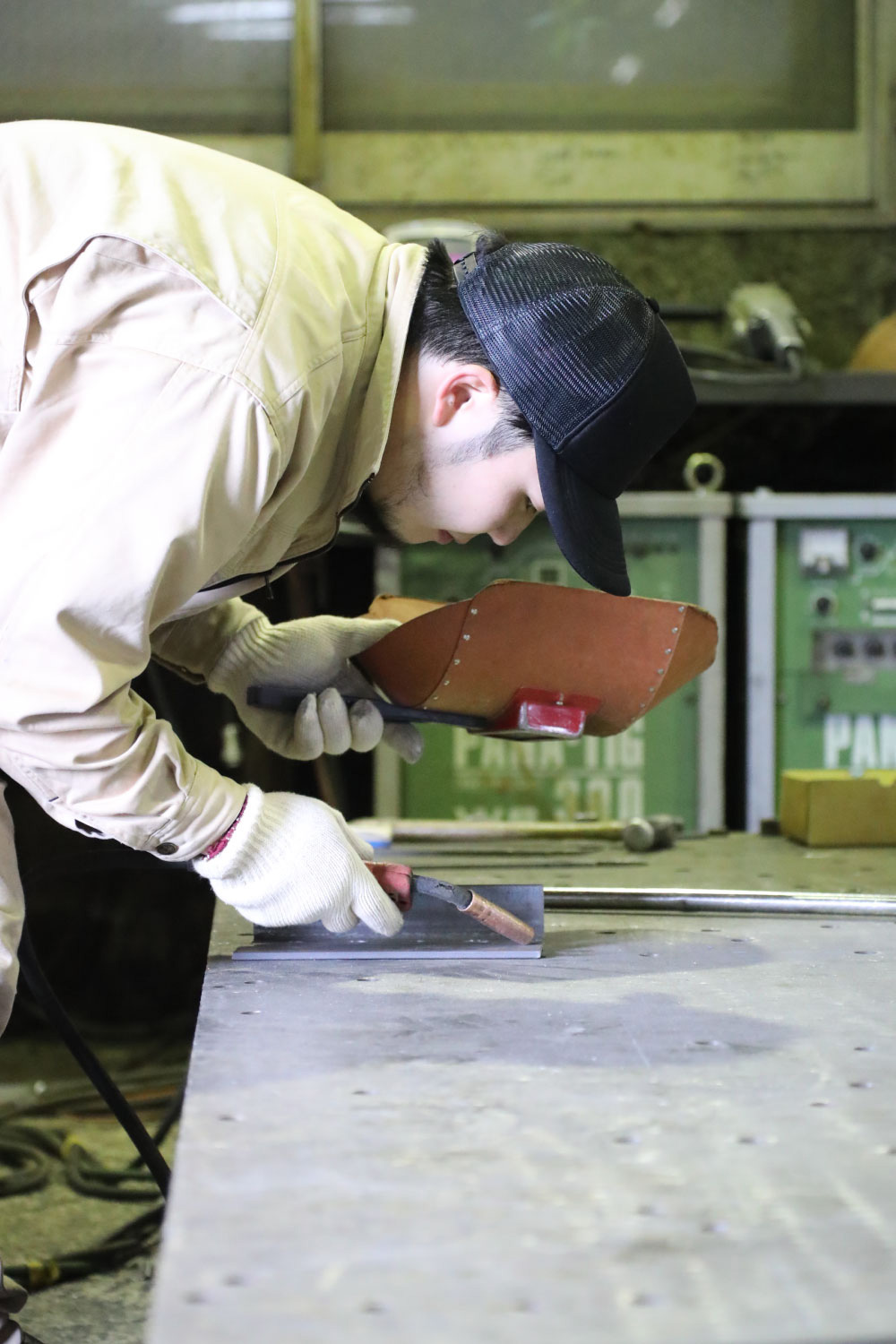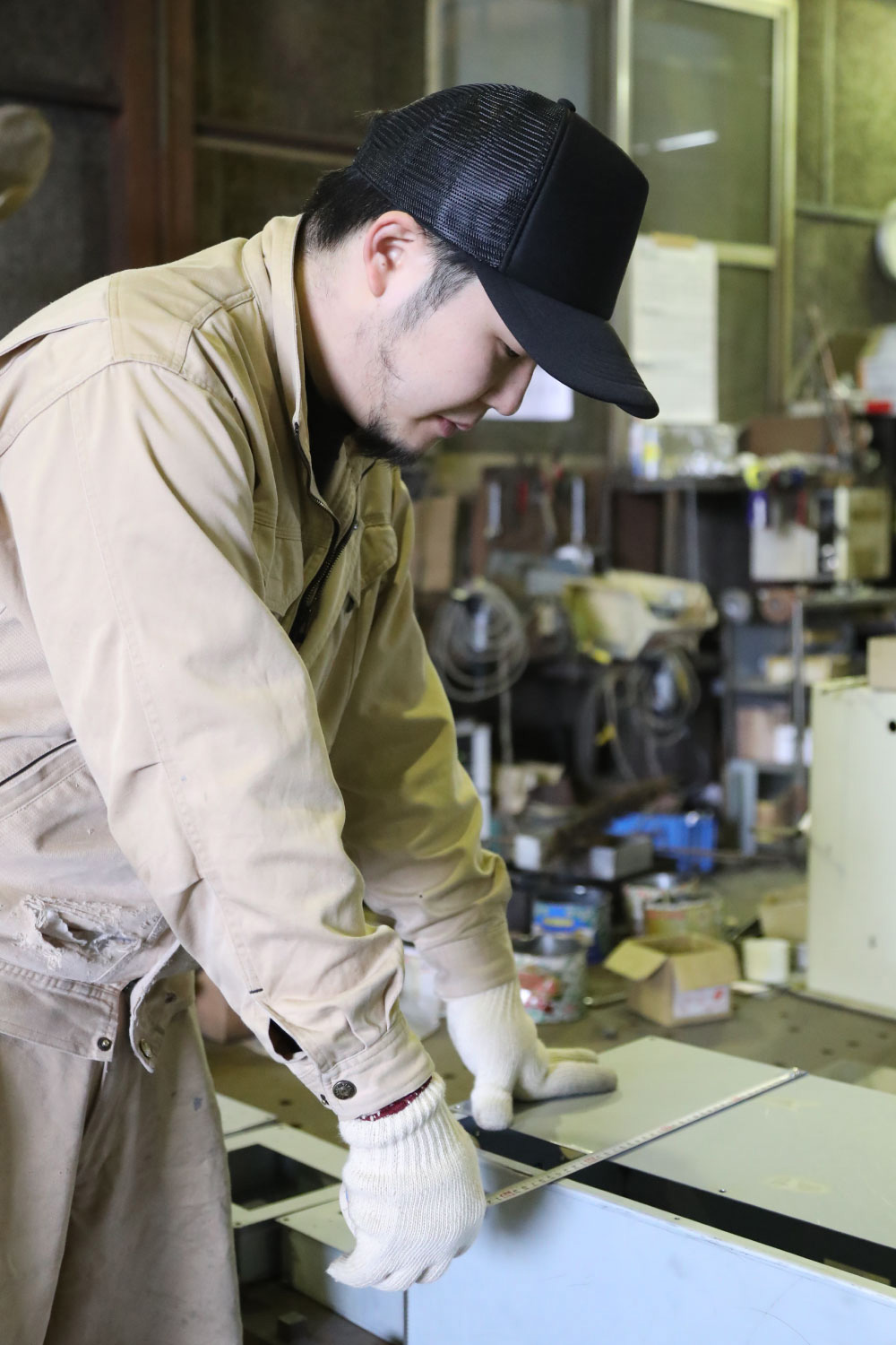 2021年3月31日 現在薄板の加工を行い、主に配電盤用のBOXは高い技術でオーダーメイド品を得意とする株式会社 湯川。入社2年目の有満さんは以前、滋賀県で水道関係の保守業務に従事。8年間ほど勤務したが、地元・北九州市に戻るタイミングで、ハローワークで見つけた同社に転職。現在は熟練の職人たちから技術を教わりながら、配電盤のオーダー製作に携わっている。「最初は稼げればいいやと思って入社しましたが、やってみたら溶接がめちゃくちゃ面白くて。ウチは一つひとつが手作りだから、物ができた時の達成感は格別です」と満足気。「小規模だからこそ、やる気さえあればなんでも吸収できるいい環境」と話し、持ち前の気配りと声掛けで現場を盛り立てながら、オールマイティーの職人を目指している。休日は海釣りや妻と買い物に出かけ、気分をリフレッシュ。
