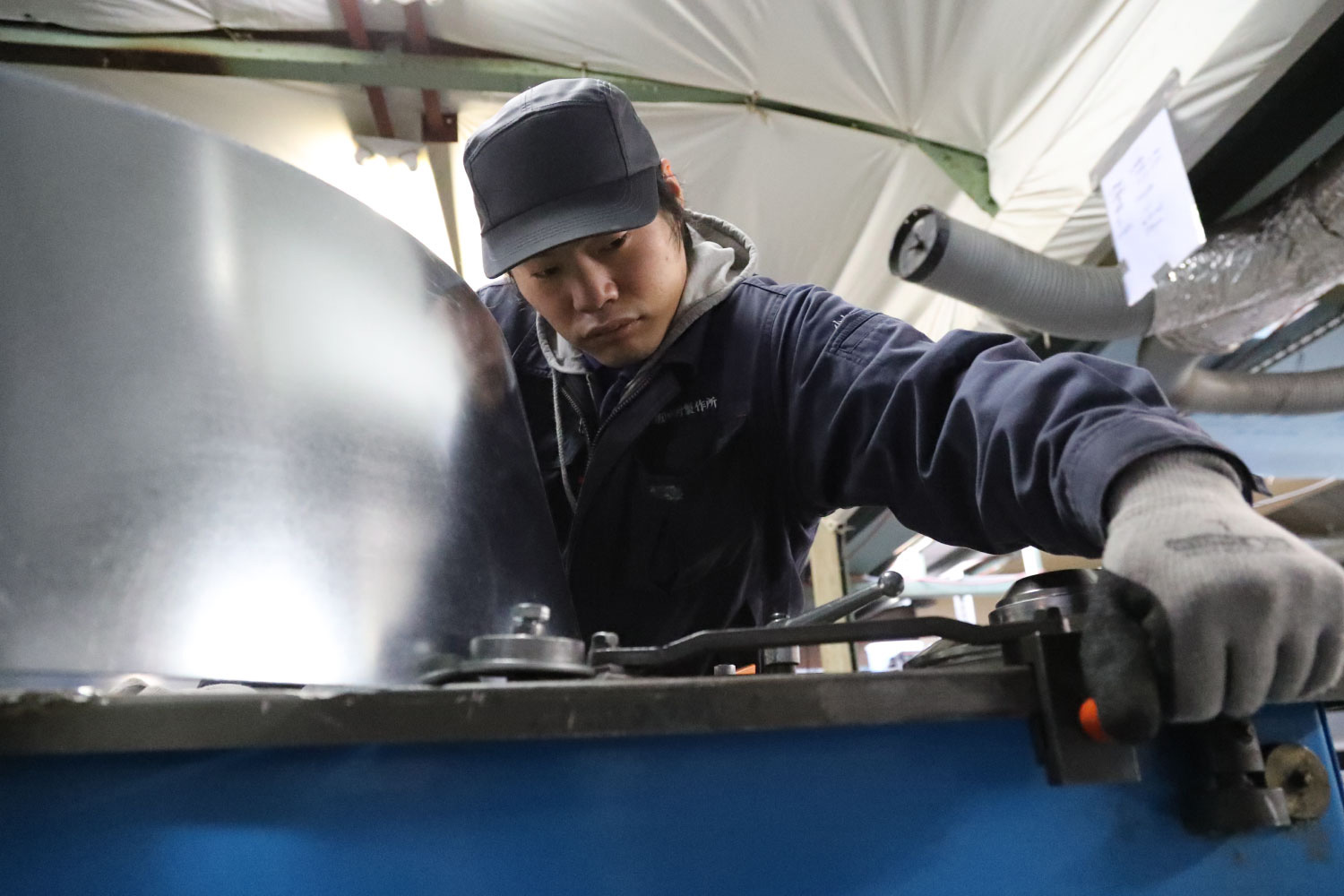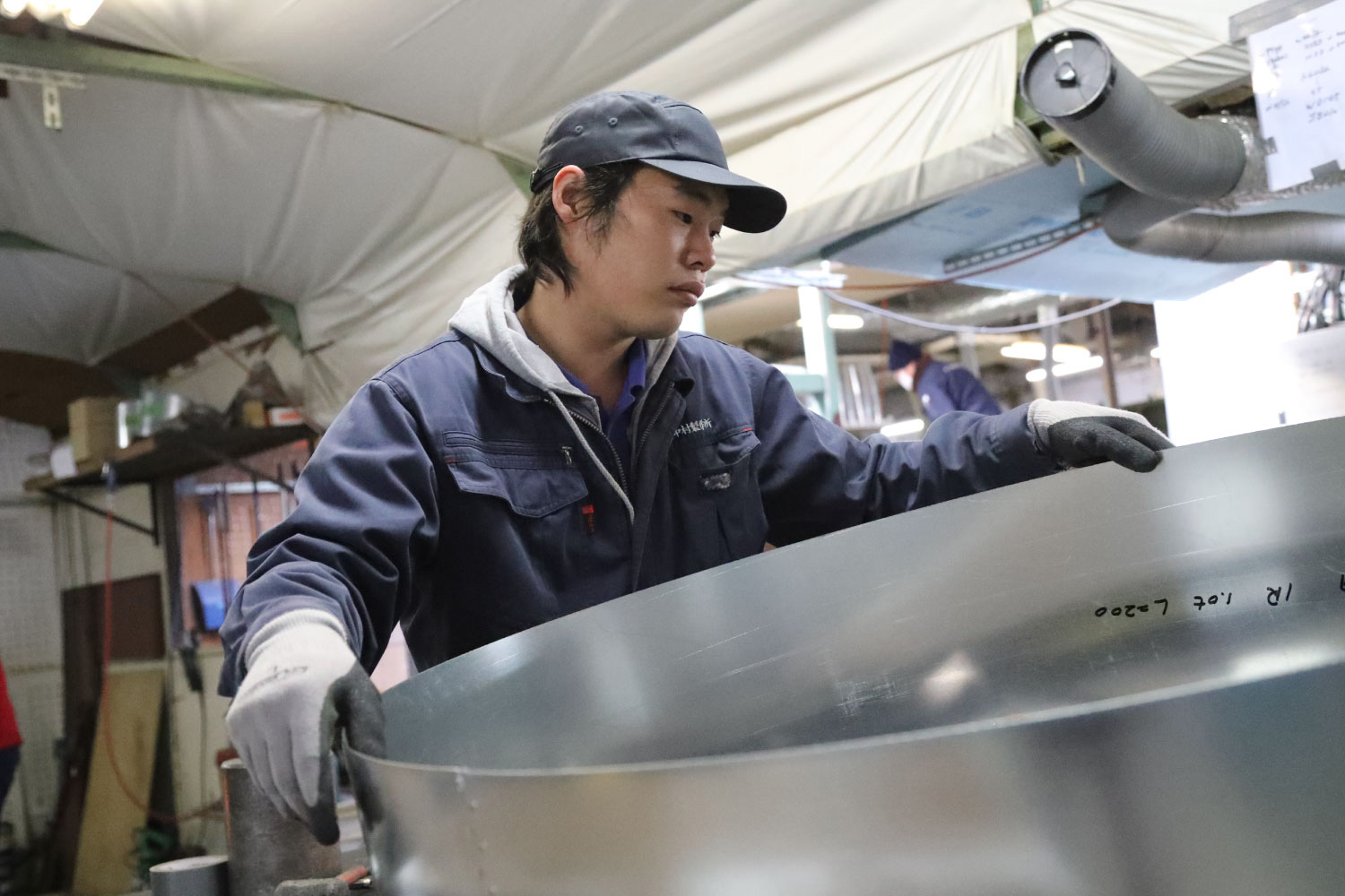 2021年3月31日 現在スパイラルダクト継手や空調ダクトなどの設計・製造から施工までを一貫して行い、高い技術でオーダー品も得意とする有限会社 中村製作所。現在、副工場長としてダクト製作に関わる工程のほとんどを担当している小山さん。高校を中退し、職を転々としていた時、知人の紹介で9年前に入社。最初は度重なる失敗で怒られていたが「同じミスは二度としない!」と心に決めてからは著しく成長。「どんなに難しくても絶対に断らない」をモットーに、今や直接注文が入るほど客からの信頼も厚く、会社には必要不可欠な存在となっている。今後の目標を尋ねると「限界を突破して、もっと売り上げを伸ばしたい。それが常に社員の負担を減らそうと努力してくれる社長への恩返しになるから」と会社への忠誠心も厚い。休日はたっぷり寝て、仕事への英気を養うのが定番だ。