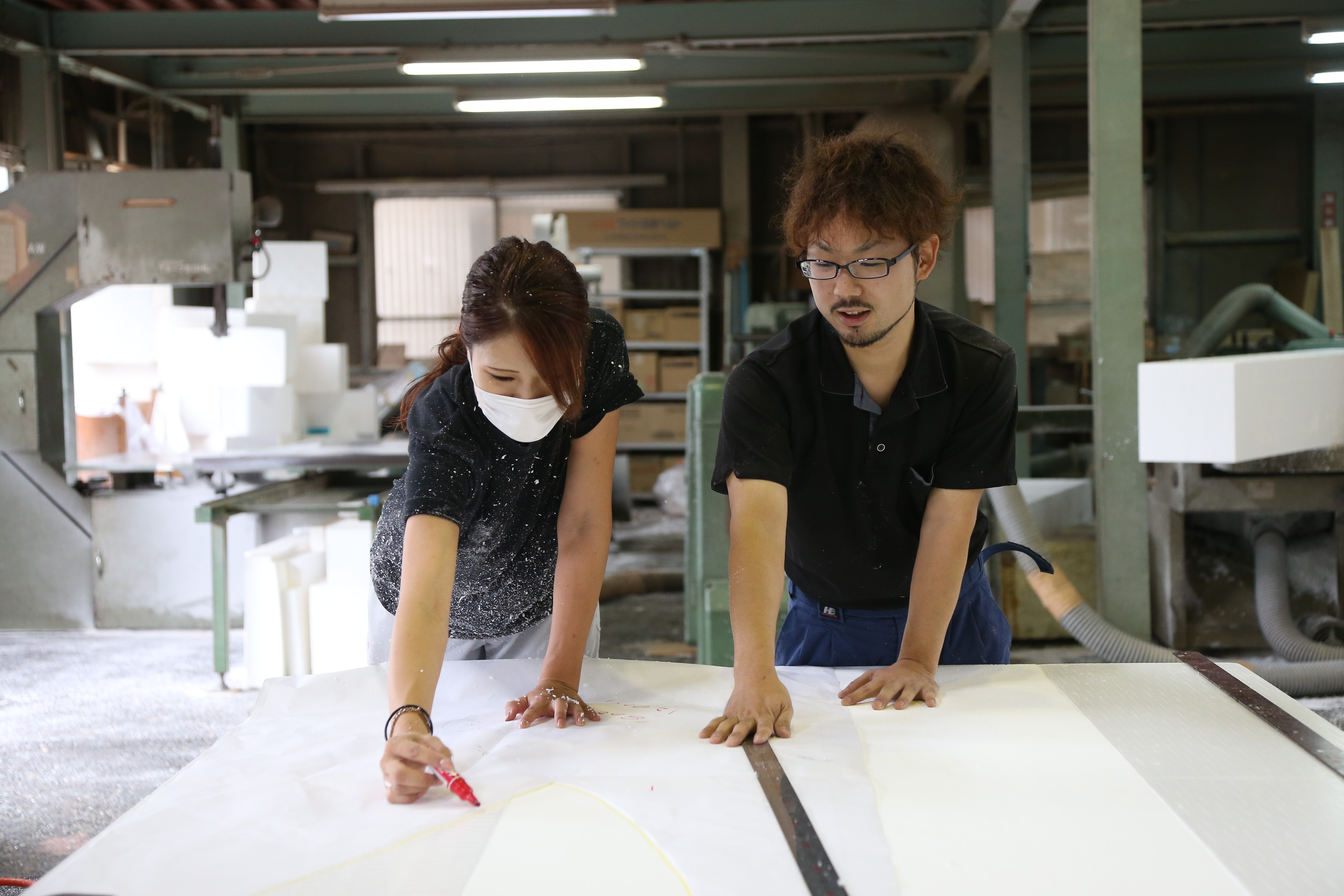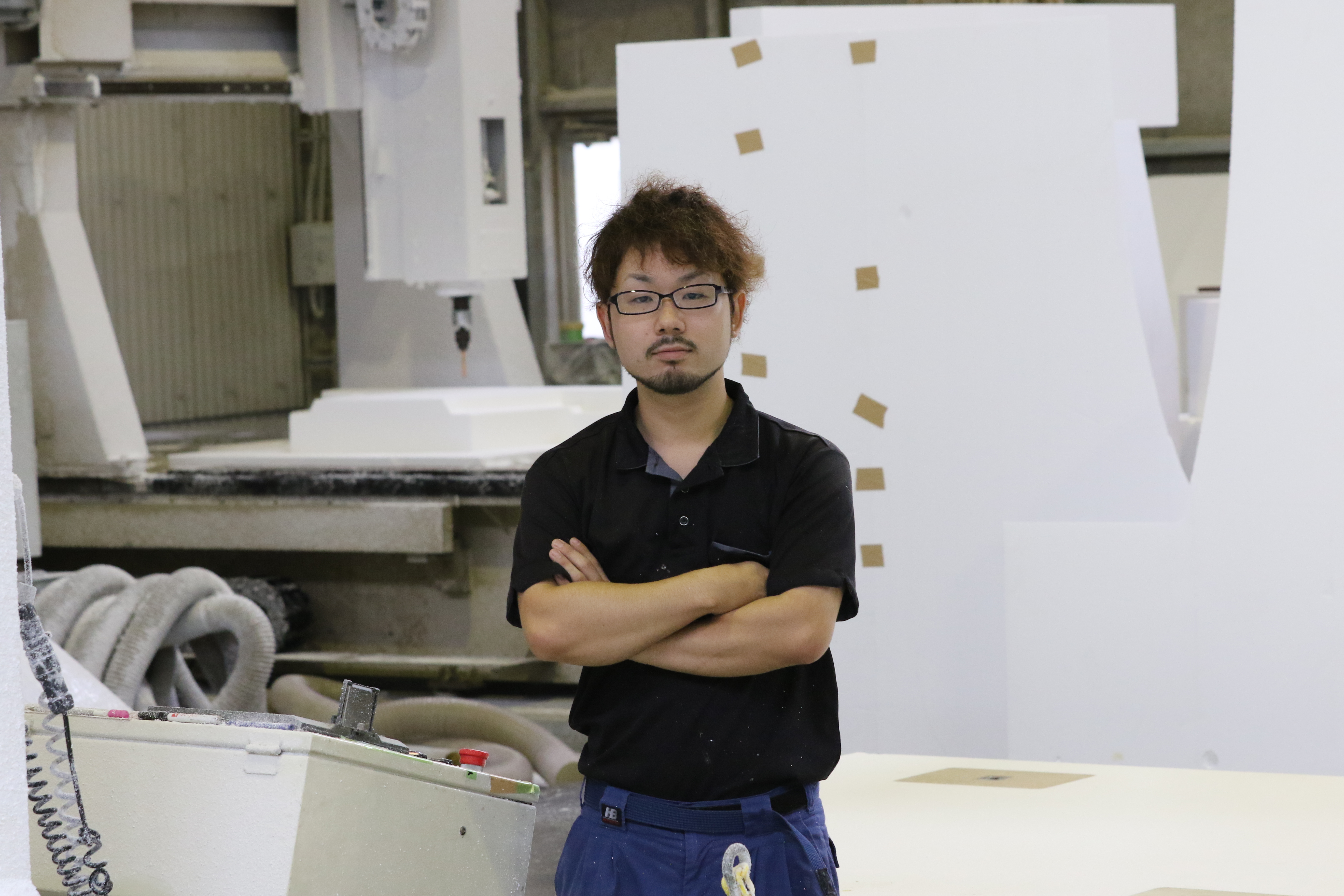 2016年10月31日 現在大物鋳鋼品向けの木型の製作を専門に行う株式会社テックヒサカタ。大規模な木型を製作できるよう、天井が高く広々とした工場は九州でも1、2を争う規模だ。大量の木や発泡スチロールでパーツを加工し、木型の組み立てから検査、出荷までを一貫して行っている三宅さん。高校のデザイン科を卒業後、県外の自動車関係の仕事に就職。震災後に福岡に戻り、職業訓練校で汎用旋盤やマシニングを学んだことで「ものづくりの面白さを更に実感しました」。2年前に同社へ入社してからはコツコツと仕事を覚え、今では大物の組み立ても任される存在に成長。「作った製品がどう使われるかを想像しながら作るのが面白い。特殊な仕事を誇りに思っています」。休日にホームセンターに行くと、仕事に使えそうなものを、つい探してしまうそうだ。