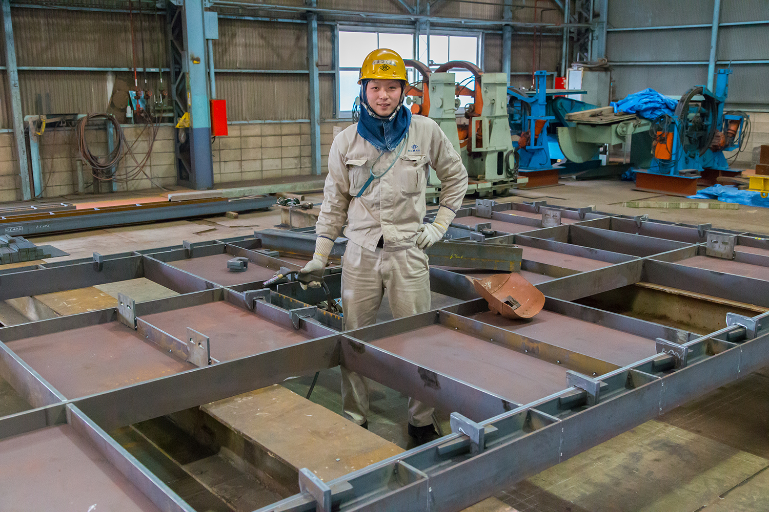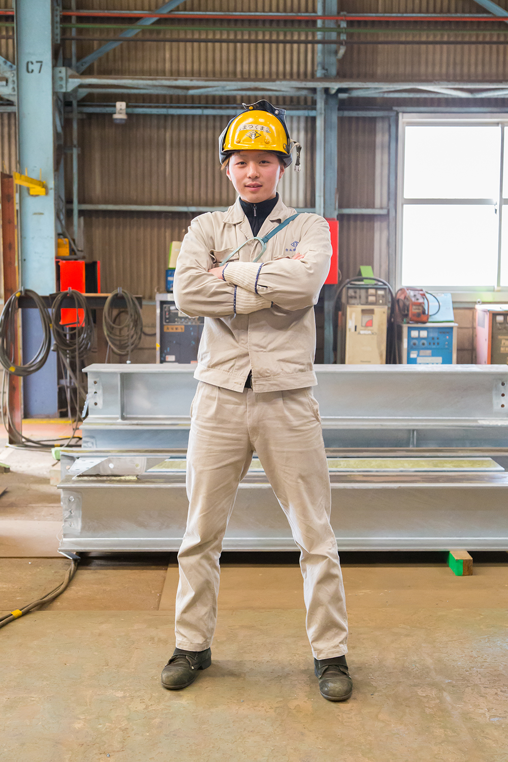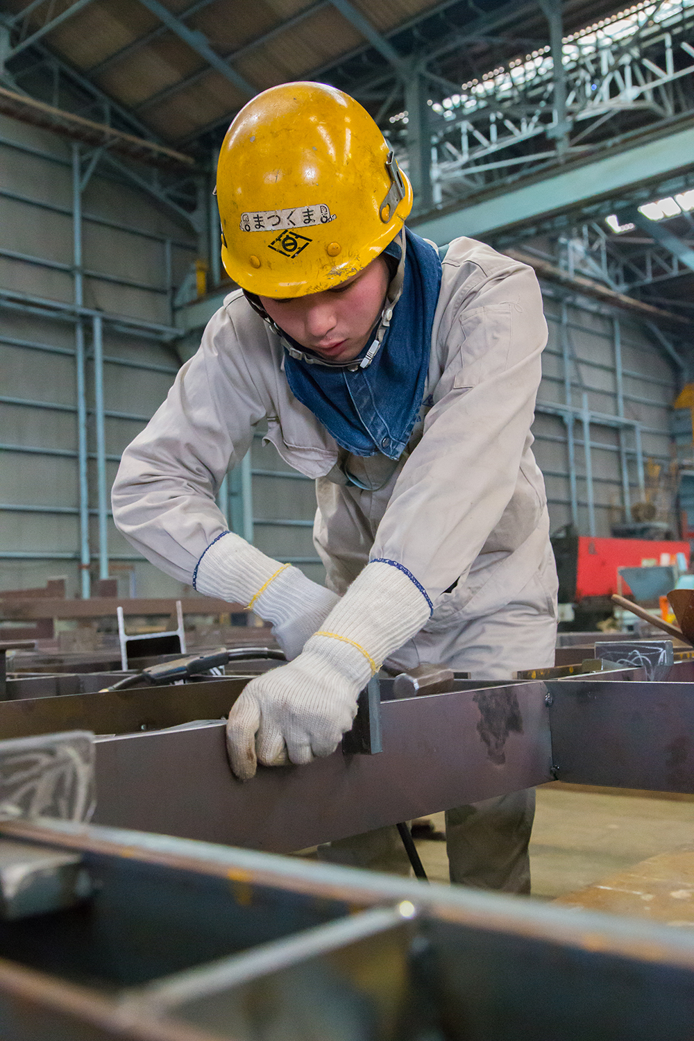 2016年3月31日 現在独自の曲げ加工技術で、エネルギー貯蔵設備である球形タンクやLNGタンク、各種圧力容器などの製作・据付工事を行う白石鉄工株式会社。煙突や耐震パネルなど、大型の鋼構造物の製作や据付も行っており、松熊さんは、その鉄骨製作ラインで汗を流している。この仕事を目指したのは、職業訓練校で溶接免許を取ったことがきっかけ。入社5年目が過ぎ、今では切断孔明けの加工から組立・溶接、製品の検査、出荷まで、全ての作業をこなすマルチプレイヤー。「納得できる鉄骨ができた時の達成感は格別」と嬉しそうに語る。「先輩に教えてもらった技術を、後輩たちへ伝えていきたい」と頼もしい一面も見せてくれた。家に帰れば、2人の子どもを持つパパの顔に。公園で遊んだり、家族で出かけたりするのが至福の時間だ。